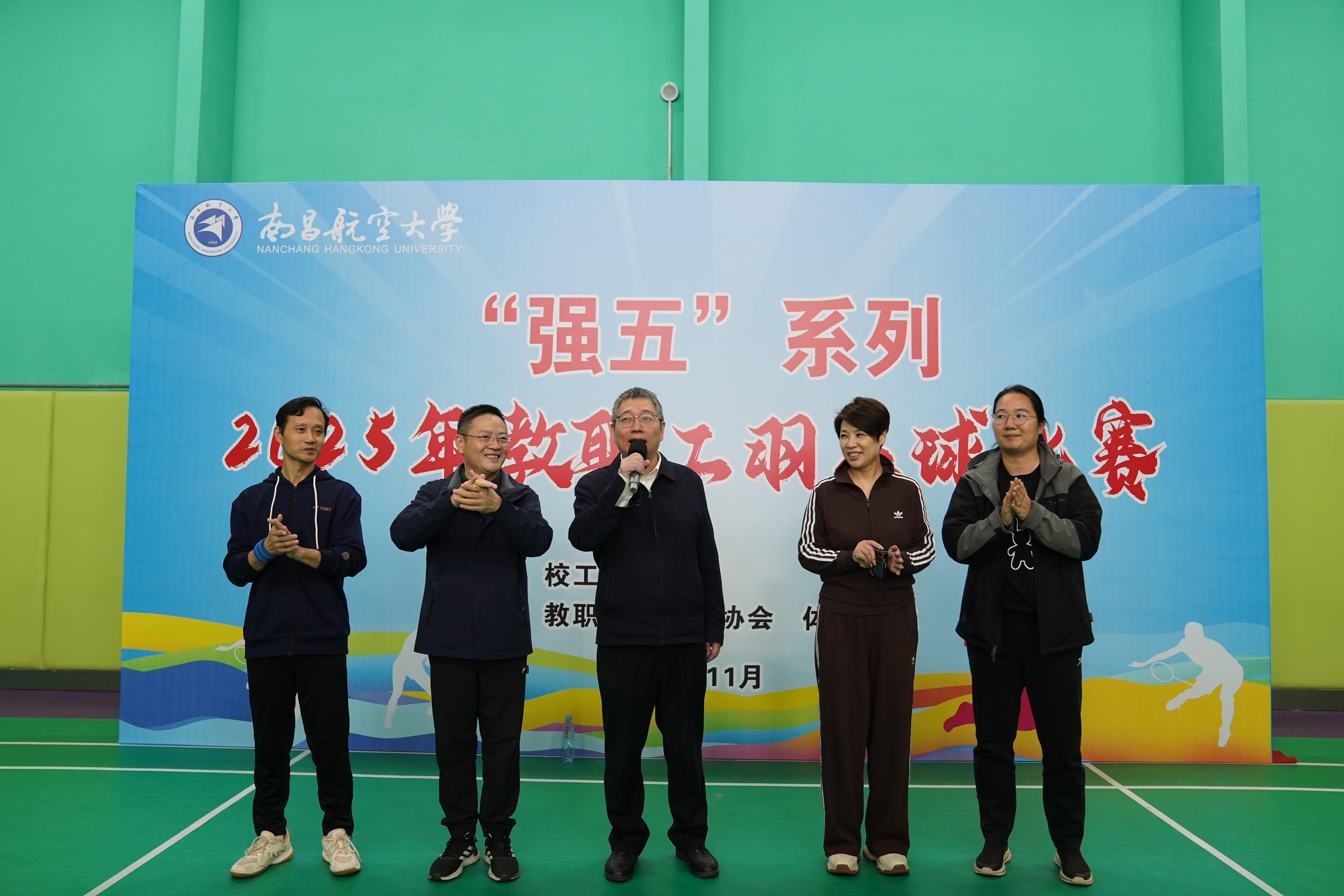 11月7日,由校工会主办,教职工羽毛球协会、体育学院承办的“强五”系列2025年教职工羽毛球比赛圆满落幕。学校党委常委、副校长郭正华参加开幕式,学校党委常委、副校长邹建平,学校党委常委、统战部部长刘芝平为获奖队伍颁奖。