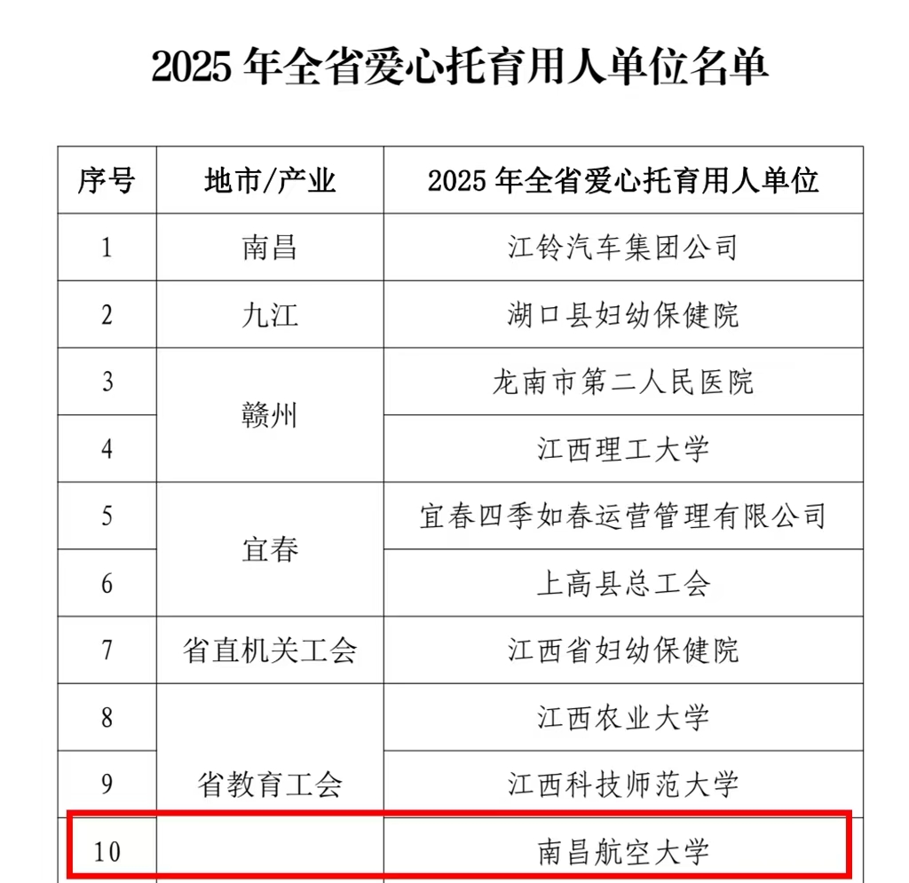 近日,江西省总工会女职工委员会公布2025年全省爱心托育用人单位名单,学校成功入选,同时获5万元专项工作经费补助。此次评选全省教育工会系统仅3所高校入选。标志着我校托育服务工作获上级肯定。